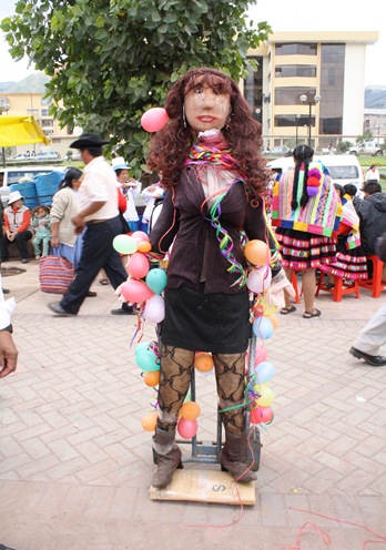 Hace como un mes fue el cierre de carnavales del mercado de Vinocanchón, en mi barrio, San Jerónimo. El jueves anterior había sido la fiesta de comadres, y el trasanterior la de compadres, por lo que esa semana el mercado estuvo poblado de figuras como esta, por la coyuntura pues.